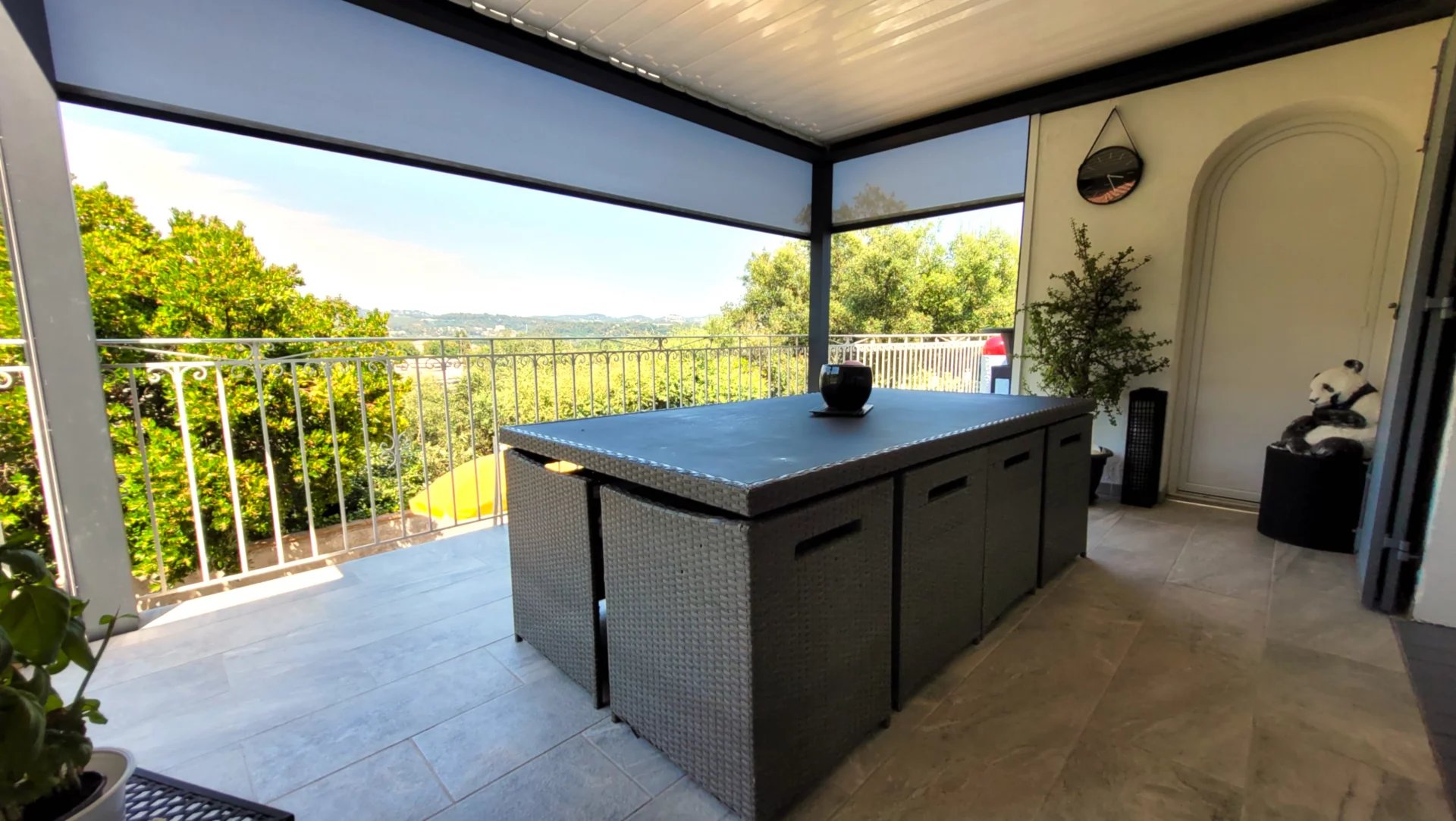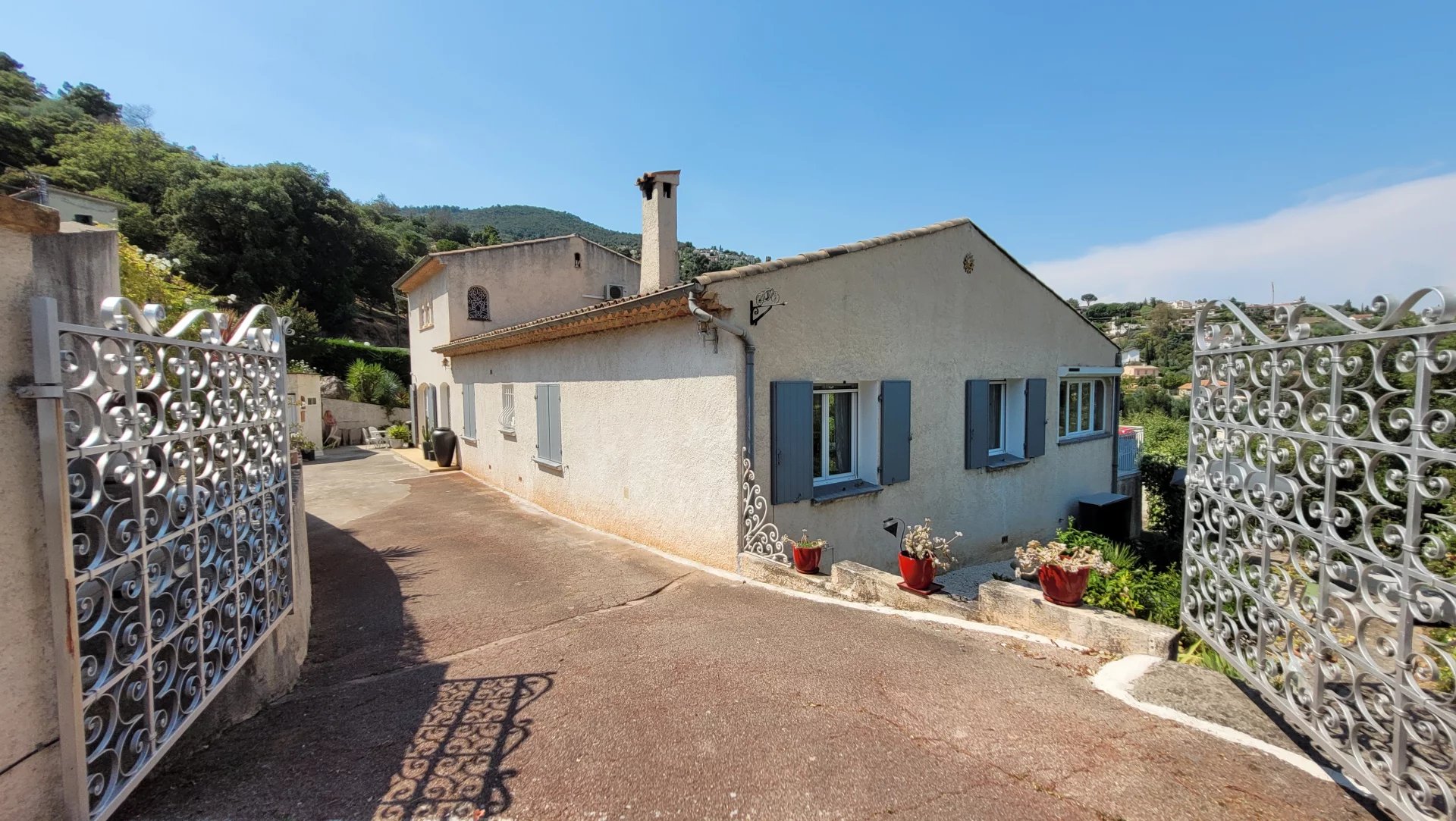 Cette villa se compose au Rez de chaussée : d'une spacieuse entrée donnant accès sur une pièce de vie conviviale avec cheminée de 42 m² ouverte sur une profonde terrasse avec une vue dégagée sur l'Estérel et sa petite vue mer, un salon pouvant être aménagé en chambre supplémentaire ou bureau, une cuisine et arrière cuisine entièrement aménagées. Sur la partie nuit, un dégagement avec placard, 2 grandes chambres avec placards et salle de douche avec WC. Un second salon/séjour de 26 m² avec un accès à l'étage menant à une suite parentale de 20,23 m² avec placards, climatisée donnant sur une terrasse et d'une salle de bain/douche/WC privative. Sur la partie extérieure vous pourrez profiter également d'une dépendance de 36,80 m² pouvant être aménagée en studio. Cette villa ayant été rénovée en 2022 bénéficiant d'une pompe à chaleur, double vitrage etc....